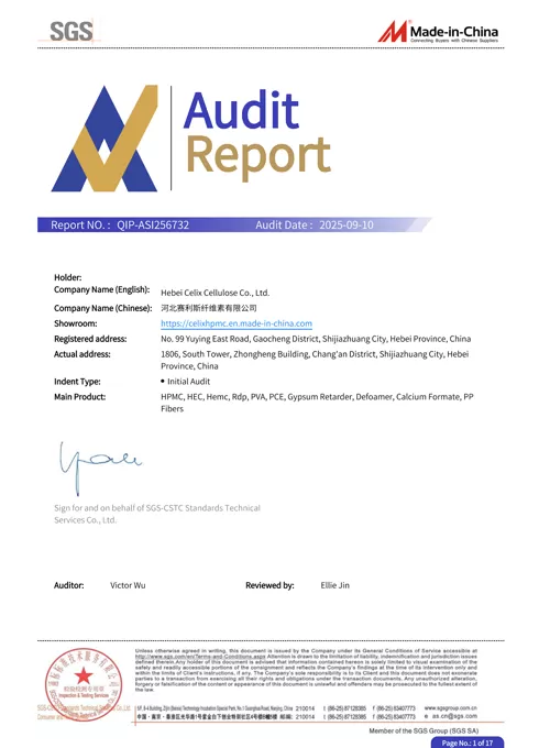 Celix Cellulose เป็นผู้ผลิตจีนที่เชื่อถือได้ของ ethers เซลลูโลสขั้นสูงและสารเติมแต่งการก่อสร้างสีเขียว ผลิตภัณฑ์ของเราประกอบด้วย HPMC, HEC, mhec, RDP, PCE, PVA,defoamers และ calcium formate ใช้กันอย่างแพร่หลายในการก่อสร้างการเคลือบและสารเคมีที่ดูแลบ้าน เราจะช่วยให้สูตรทั่วโลกด้วยเทคโนโลยีเซลลูโลสที่ยั่งยืน